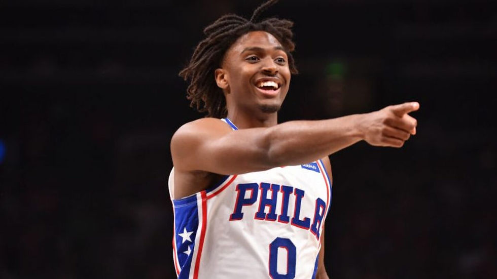 Tyrese Maxey, the burgeoning talent for the Philadelphia 76ers, has swiftly risen as a prominent figure in the NBA. Operating as a guard, his adaptability and scoring prowess are truly impressive. Maxey's ability to navigate to the basket with speed and precision, along with his steadily improving three-point shot, establishes him as a dynamic force on offense. Moreover, his playmaking abilities and court vision have experienced notable growth, enhancing his overall game. On the defensive end, Maxey's agility and unwavering determination render him a valuable asset in disrupting opponents' plays. What truly distinguishes Tyrese Maxey is his relentless work ethic and resolve, qualities that have earned him admiration from fans and teammates alike. As he continues to refine and expand his skill set, Tyrese Maxey is poised to assume a crucial role in the Philadelphia 76ers' pursuit of success in the league.